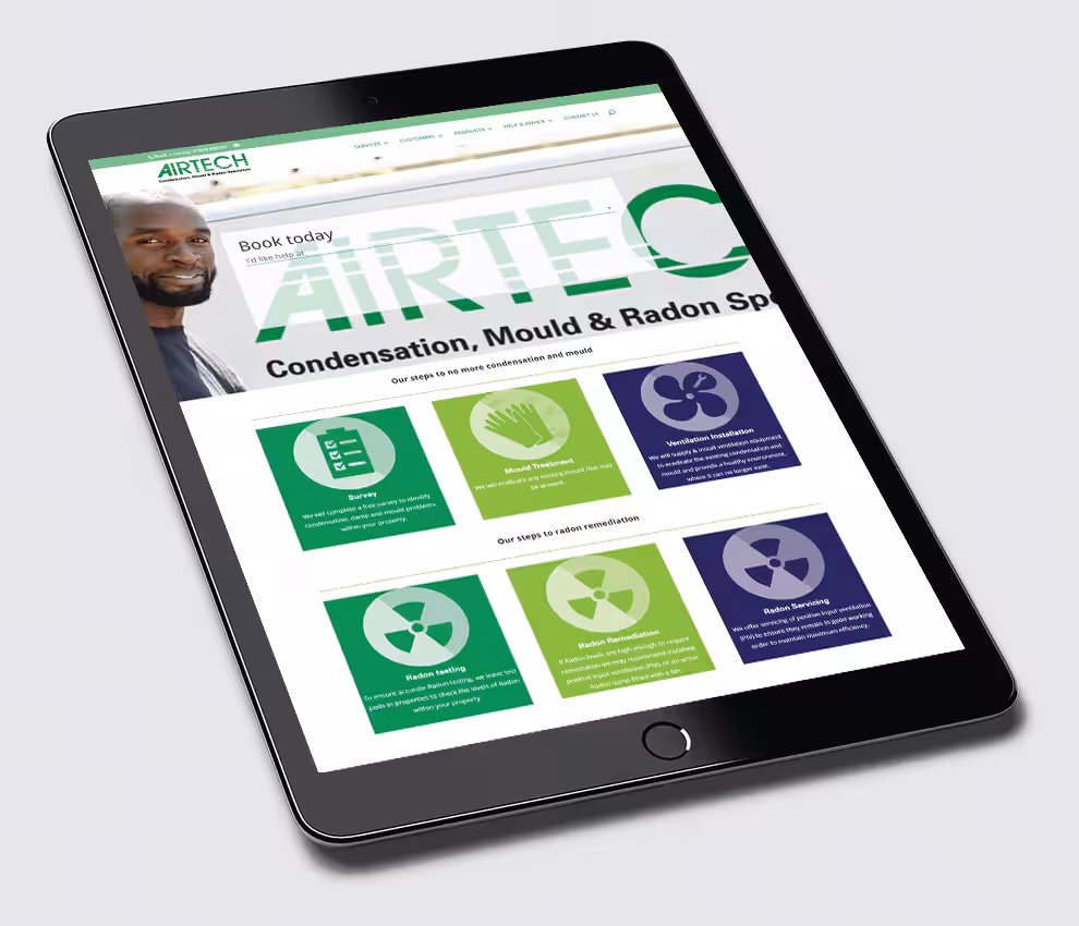 Airtech’s website has moved away from traditional ventilation websites that lists social housing ventilation products and services. Instead this new journey-led, solutions-based website is a sophisticated engaging resource, providing users with expert information on how to tackle condensation, mould and radon, as well as how to help prevent condensation and mould in properties. Visitors to the homepage will be able to immediately go to where they need to be on the website thanks to a selector tool with a simple drop-down menu. By simply selecting property type, what issue they’d like help with and what solution they are looking for, visitors will swiftly find the answer to their problem. This includes directing visitors to: